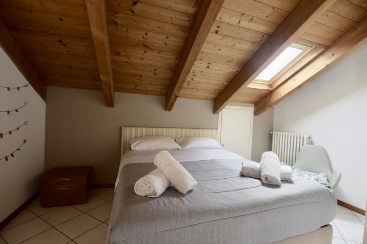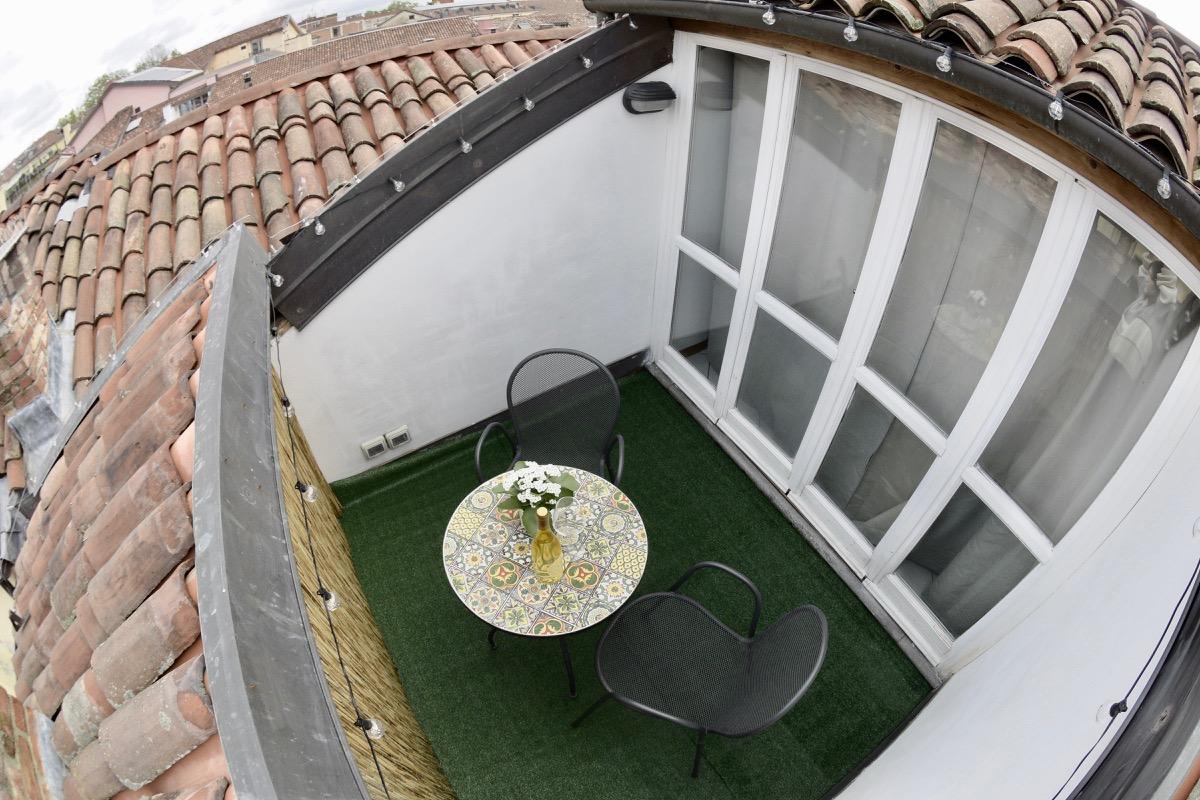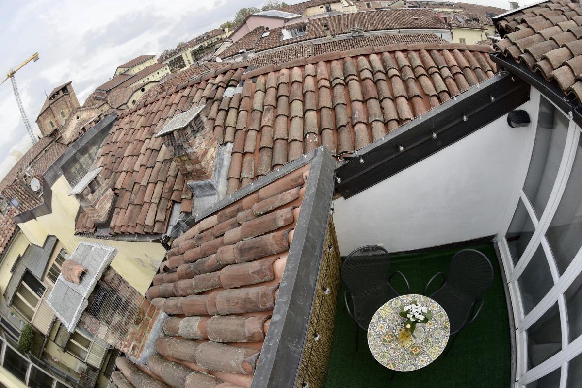 L’appartamento, posizionato al terzo piano di un edificio dotato di ascensore, si sviluppa su due livelli. Al piano inferiore, troverete un'ampia zona living con un angolo cottura completamente attrezzato e un bagno. Al piano superiore, una camera da letto con un affascinante soffitto in legno a vista e un secondo bagno vi accoglierà. Entrambi i piani offrono balconi: uno al piano inferiore con vista su un tranquillo cortile interno e una splendida terrazza al piano superiore, da cui si può godere di una vista incantevole sulla basilica di San Secondo. L’appartamento è inoltre fornito di aria condizionata in entrambe le zone, riscaldamento autonomo e Wi-Fi gratuito.